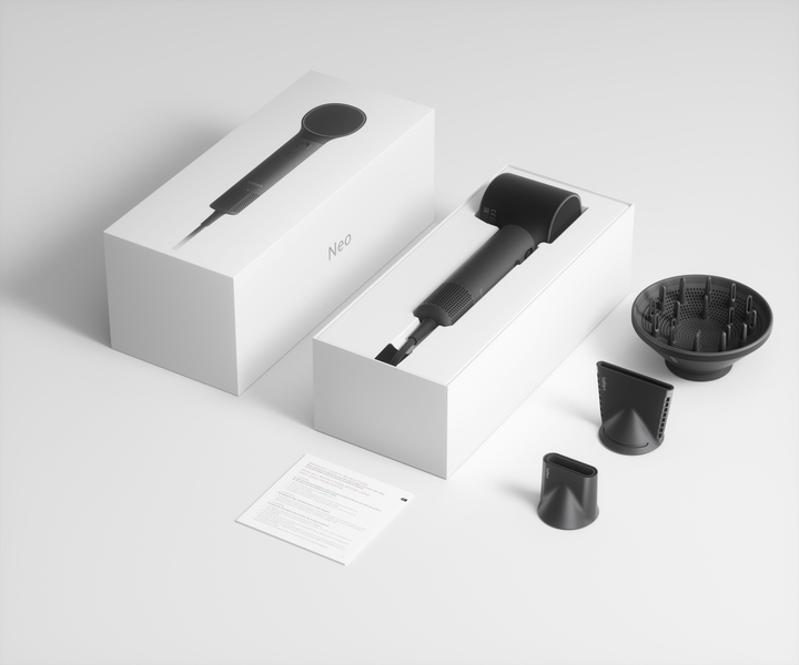 Neo incluye tres boquillas magnéticas que se cambian sin esfuerzo, pensadas para que el mismo secador sirva para estilos distintos sin necesidad de comprar herramientas adicionales: