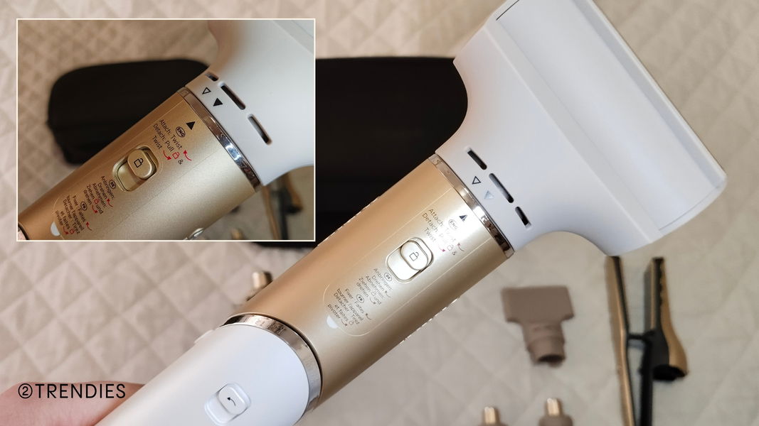 Este detalle lo usé especialmente con los rizadores, ya que para fijar el rizo de forma efectiva debes cambiar el aire caliente a frío y realmente es cómodo sujetar el moldeador y cambiar incluso solo con una mano.